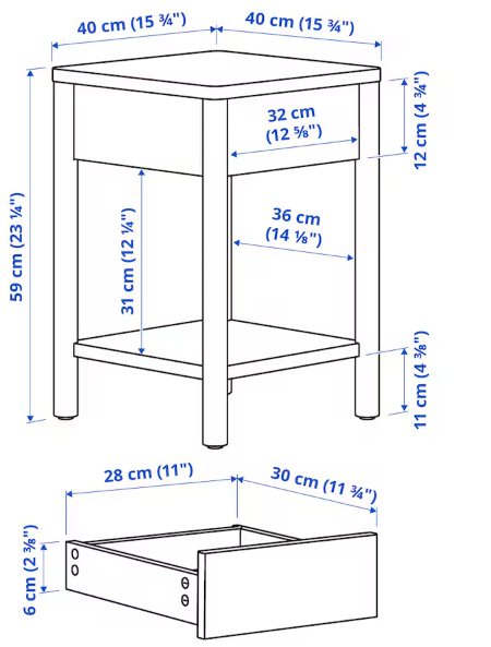 Dit vierkante bijzettafeltje kan prima gebruikt worden als nachtkastje. Het is gemaakt van eikenfineer